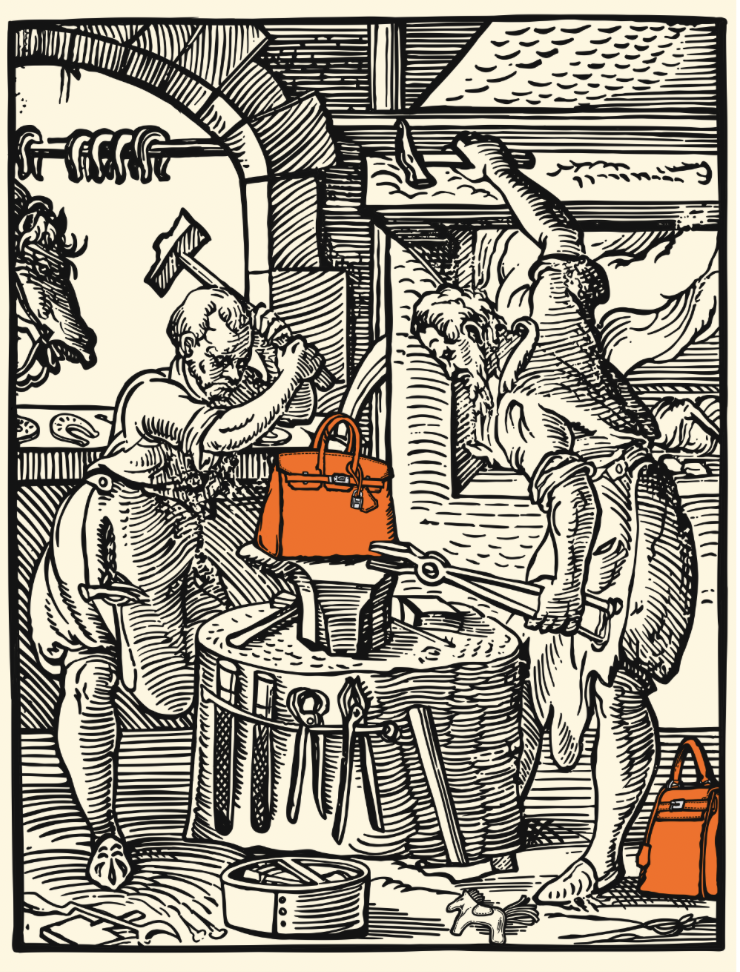 JEJn’s work, which uniquely fuses the artisan culture of medieval guilds with the symbols of contemporary consumer society, offers a visually striking experience that transcends time, delivering sharp insights into modern human desires. His pieces prominently feature luxury brand logos such as Chanel, Rolex, Hermès, Nike, and Comme des Garçons emblems of contemporary consumerism that function as the most candid symbols stimulating our desires.By juxtaposing the labor of medieval craftsmen with the consumption of modern brands, his work provides a profound reflection on the value of labor and the meaning of consumption within capitalist society. Through the extraction, synthesis, and reconfiguration of diverse images or by deliberately clashing clichéd visuals Jejn presents a black comedy of contemporary consumer culture.